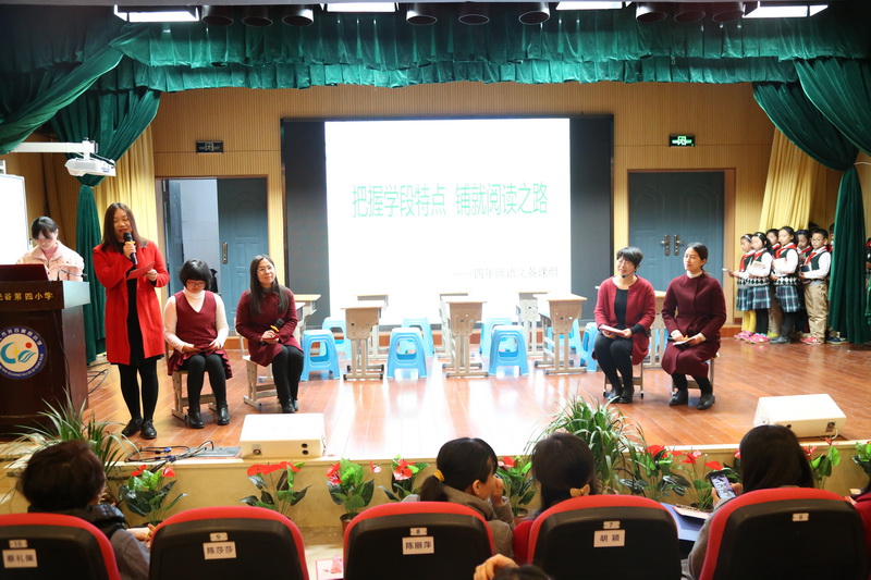 听君一席话,胜读十年书!刚才,我们四年级的老师们从激发兴趣,落实阅读目标;段落教学,把握阅读重点;能力训练,提高阅读水平;重视积累,拓展阅读视野等四个方面阐述了自己是如何把握中年段学段特点,来提高阅读教学的有效性的。谢谢老师们的分享!