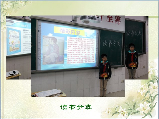 我们认为,开展丰富的课外活动,也有利于激发学生的阅读兴趣。比如开展“讲故事”、“读书汇报会”等生动活泼的课外活动,能有效地检查阅读情况、巩固阅读成果,让学生享受阅读的乐趣。