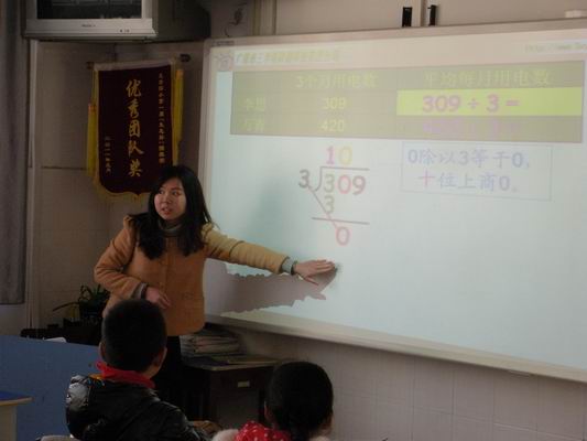 3月14日上午,宋倩倩老师在三(4)班执教了《商中间或末尾有0的除法》,这是继上周听课后的第二次跟踪听课,在课前陈督学对教案的设计给予了自己的意见。整节课宋老师非常注重笔算除法中每一步算理的讲解,适时给机会请学生上来说说自己的计算方法,培养学生的口头表达能力。在新授完一个知识点后及时对该知识巩固练习,再配以混合练习、趣味练习,使学生在多种形式的练习中逐步体会计算方法。
