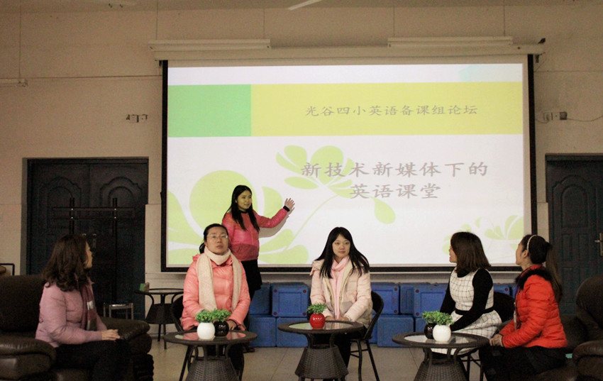 活动前期,分管英语教学的课管夏宇彤主任,组织全组教师学习了大数据时代的有关文章,根据教育云工作的相关要求,结合市教研员前期到校对曾维娜电子书包研究课中英语学习软件、微视频等新鲜的信息技术元素运用的指导,确定了英语组的研讨方向。