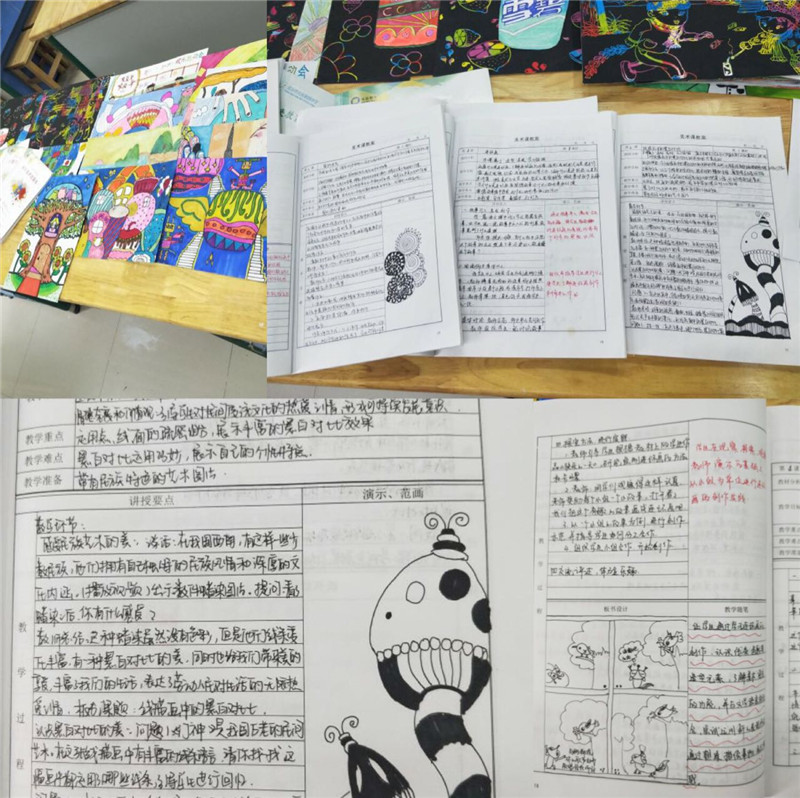 从检查情况来看,教师的检查材料齐全,每位教师在教学中都做了大量工作,都能够做到教案实用,教案的指导性、操作性强。出现了很多常规亮点:其中张卫红老师、凡红忠老师、陈莎莎老师、刘雅靓老师、杨梦汝老师的备课做到了课课有动态,课课有反思;美术组桑思雨老师的备课本范图精美,备课中过程清晰全面;许芳老师精心制作的刮画范画美观,有示范性、体育组的付倩老师、科学组的张琴老师、廖颖涛老师均做到了超周备课,字迹工整,且教案环节完整。