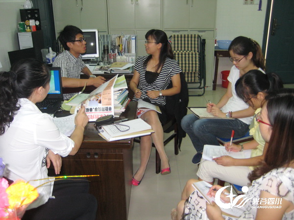 2012年9月13日下午,我校四、五、六年级语文组在四(2)班教室组织了本学期继张顺教师的研究课后的第二次讲课评课交流活动,此次活动是由余文婷老师主讲。课堂上余老师条理清楚、层次分明,赢得了听课老师的一致好评,尤其是其小组教学模式的尝试更是给在座老师耳目一新的感觉。课后,教研组长马丹老师及时组织了本组教师对余老师的教学进行了评课交流。马老师高度肯定了余老师这种乐于学习勇于尝试的精神,并提出了“唯有积极探索,积极思考,教学才会有进步”的经验总结。四年级组长詹志梅老师对余文婷老师的小组教学模式进行了总结性的评论,并指出小组教学应注意以下问题:(1)合作学习建立在自主学习的基础上,应该给学生提供自主学习的时间;(2)自信,教师唯有自信,课堂才能生动,教师要用自己的自信带动全班的自信;(3)准确、生动,教师尤其是语文教师要注意语言的准确定,并在准确的基础上注重文采和幽默。