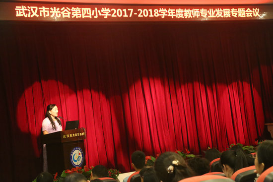 教师发展是学生发展的前提。活力萎顿的教师不可能培养出健康流畅的生命;视野狭窄的教师不可能带出纵横捭阖的学生;无法实现自身专业化成长的教师不可能真正赋予学生可持续发展能力。校本研训作为教师专业发展最重要的途径,如何做到有实效、有特色,并且能长期坚持,形成稳定的校本研训体系,光谷四小本学期又出了新举措。9月1日,开学第一天,光谷四小全体教师在报告厅召开了新学年教师发展专题会议,并举行了“青蓝工程”师徒结对启动仪式。整个活动由教师发展中心主任詹智梅主持。