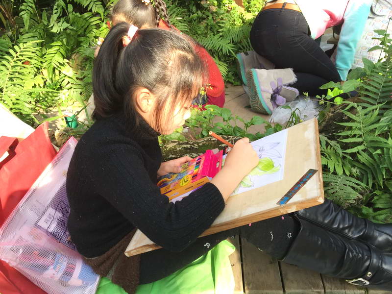 与来自不同学校的学生、家长和老师在志愿者的带领下汇聚于植物园的中央大草坪上,,投入到了大自然的怀抱,开始了孩子们的发现之旅。整个现场绘画进行了2个小时,在这段时间内,孩子们自己去寻找要表现的自然景物,然后进行作画,并且写下自己观察到的事物以及心中的感受。