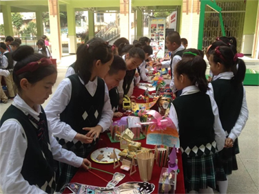 美劳手工区全都是学生和家长们利废利旧,发挥自己的想象力和创造力制作的手工作品。作品包括卡纸剪剪剪、创意纸杯、绚丽绢花、布艺小包、DIY花瓶等。作品风格各异、特色鲜明、制作精致,孩子们用自己灵巧的双手,编织了一个个欢乐的梦,艺术的种子播洒在孩子们的心里。