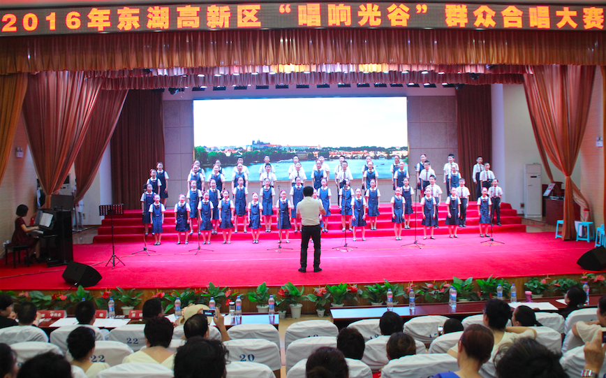 金秋九月,丹桂飘香。9月24日上午,2016年东湖高新区“唱响光谷”合唱大赛在光谷九峰中学隆重开幕,全区20个比赛队伍欢聚一堂,经过一天的激烈角逐,精彩表演。我校选送节目《自由飞翔》《库斯克邮车》第8个出场,合唱队员们绽放全场,完美展现四小娃精!气!神!以优雅的服饰,饱含深情的演唱,师生完美融合,博得了观众和评委的啧啧称赞,经过五位专业评委的认真打分,一举获得本次比赛一等奖。