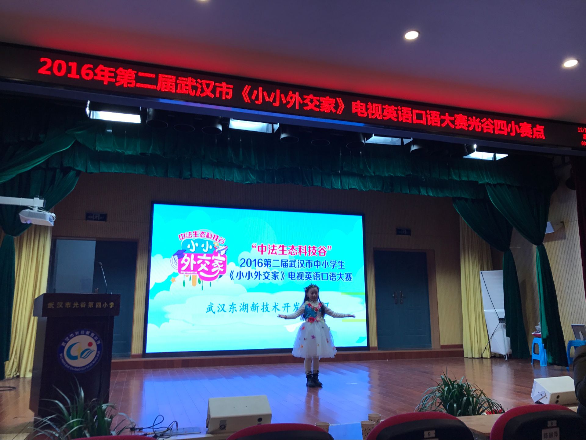 12月13日上午,“中法生态科技谷”2016第二届武汉市中小学生《小小外交家》电视英语口语大赛之东湖新技术开发区比赛陆续拉开帷幕。在光谷四小赛点,来自光谷四小和华科附小的47名小选手们同台竞技、精彩亮相。