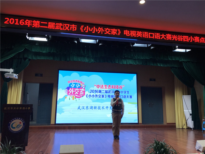 “中法生态科技谷”2016第二届武汉中小学“小小外交家”英语口语大赛是由武汉市人民政府外事办公室、武汉市教育局、武汉广播电视台联合主办的大型公益赛事。通过这次活动,极大丰富了孩子们的课堂与实践,让英语口语学以致用。
