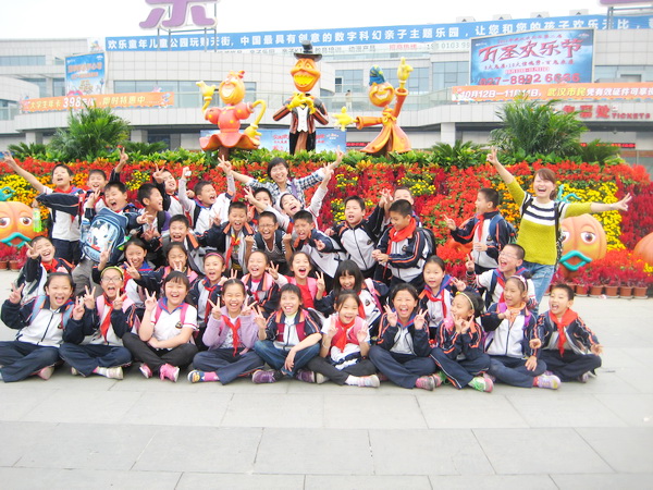 师生们于上午九点准时出发,一辆辆大巴车满载着孩子们的欢声笑语驶向目的地——武汉“欢乐谷”。拥有多项全球最先进游乐设施、亚洲首座木制双龙过山车、高达120米的“跳楼机”观光塔、武汉首个4D影院等的武汉“欢乐谷”主题公园一直是学生们向往的梦想乐园,他们对那些精彩的游乐项目都一个个如数家珍,跃跃欲试。一进入园区,梦想大道、急速世界等八大主题区域都不同层度地分布着排队等候的人群。