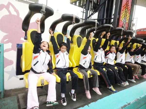 最受学生们喜爱的当属木翼双龙、蒙地卡罗赛道、DISCO等“勇敢者的游戏”。园区内不仅到处交织着车轨间密集的卡卡声和他们既爱又怕的尖叫声;同学们有的在伸手不见五指的“异度空间”鬼屋中领略到非一般的惊悚体验;有的来到卡通工厂,一起乘坐“尖峰时刻”,从高空飞速驶下,体验瞬间提升、跌落时所带来的心跳加速的快感;还有以速度快、提升高、回转多闻名的巷道式矿山车“蒙地卡罗赛道”,在高速滑行后,突然转向,等待着的是又一次高速侧滑……这些惊险刺激的项目让同学们体验了心脏停止的刺激、体会了自由飞翔的快乐,更让同学们挑战了自我,挑战了极限,可谓收获多多。
