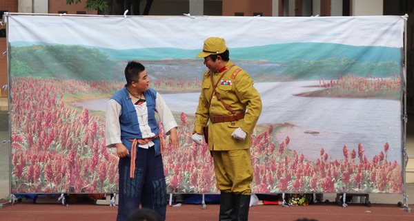 5月16日上午,芦苇花、红缨枪、儿童团把光谷四小操场变成了战火纷飞的抗日战争中的燕赵大地,由团市委、市教育局组织的“小时候.双百场演出进校园”活动走进了光谷四小,儿童剧《小英雄雨来》在这里精彩上演。
