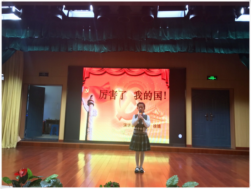 本次比赛由李书记、马丹主任、程华老师、张卫红老师和李爱珍老师担任评委。按照比赛活动方案,五六年级每班经过班级海选后推选出一名选手参加学校比赛。演讲活动中,选手们将个人理想融入到中华民族的共同理想之中,或旁征博引,或引经据典,讴歌了祖国现代化建设的伟大成就,道出了对祖国的热爱。选手们个个自信、大方、富有激情;他们如同春天里的花儿,争奇斗艳,展示了“少年智则国智,少年强则国强”的精神风貌。选手们激情飞扬、情绪饱满的演讲,表达了他们对美好未来的渴望,对自己是一个中国人的自豪,深深感染着在场的每一位听众,使大家真正感受到了“厉害了,我的国”。