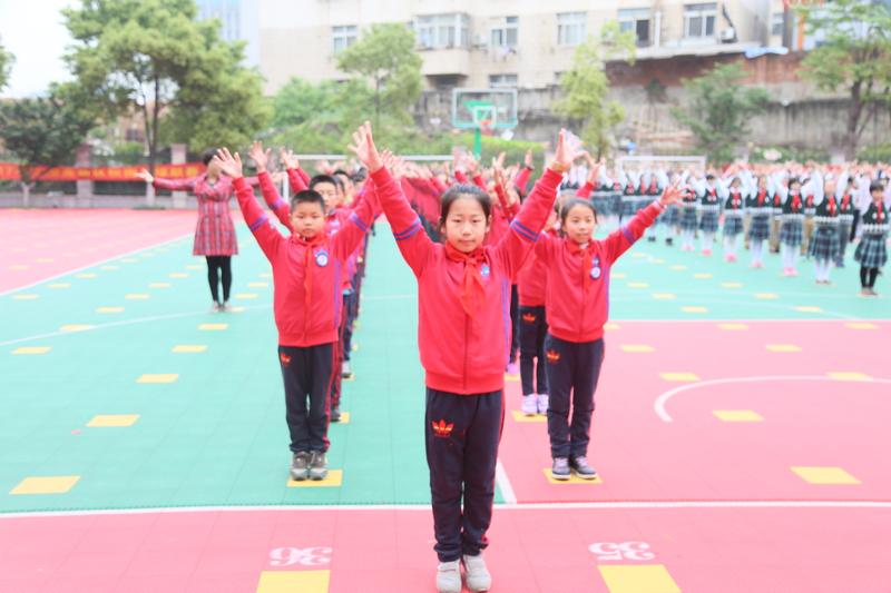 七彩阳光,快乐童年。正在进行的是广播体操比赛,各班统一着装,按照比赛顺序进入场地,迅速呈体操队形散开后,音乐声响起,他们动作统一有力,眼神坚定,朝气蓬勃的士气充分展现了当代阳光少年的精神风貌。