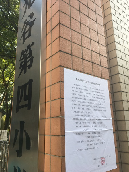 李书记最后传达了《东湖高新区工委第一巡查组巡查公告》的精神,根据高新区工委巡查领导小组统一部署,工委第一巡查组将于2017年4月26日开始,安排一个月时间,对东湖高新区教育系统全面从严治党主体责任落实情况开展巡查。重点考察单位领导班子及成员在履行加强组织领导、选好用好干部、加强和改进作风建设、维护群众利益等方面的问题。根据高新区工委工作要求,在学校大门显眼处展台巡查公告,公示巡查组受理电话、联系信箱、信访接待点、意见箱、电子信箱等。