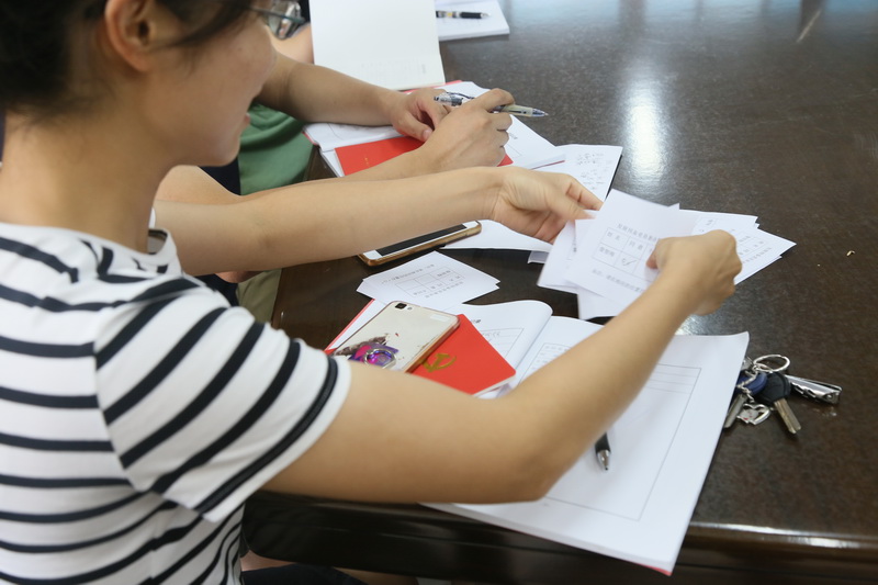 全体党员同志对詹智梅老师入党进行了无记名投票。推选高洪琳、刘婷担任监票人,王薇、杜葵担任计票人,通过现场计票,当众宣布无记名投票结果:应到党员40人,实到党员33人,同意33票,不同意和弃权0票。支部书记李九胜宣布詹智梅老师加入中国共产党,预备期是2017年7月10日——2018年7月9日。