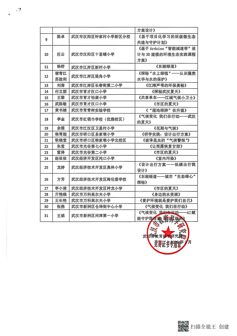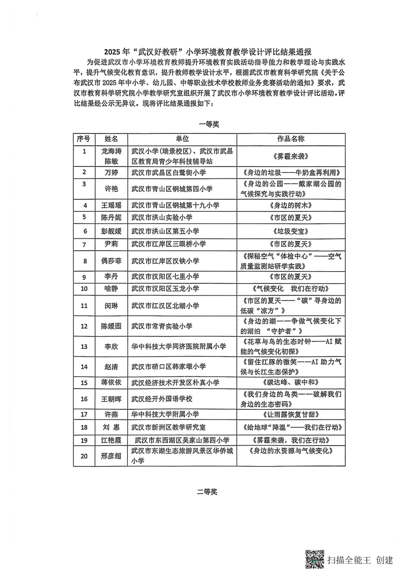 2025年“武汉好教研”小学环境教学设计评比结果通报