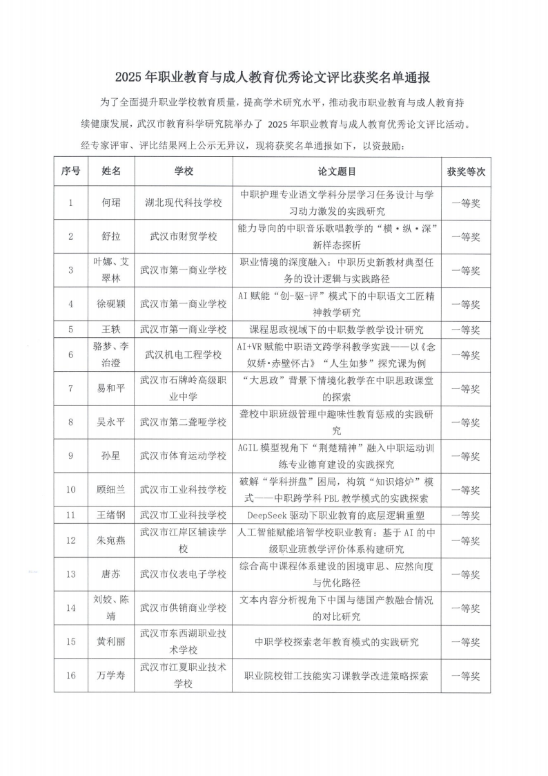 2025年职业教育与成人教育优秀论文评比获奖名单通报